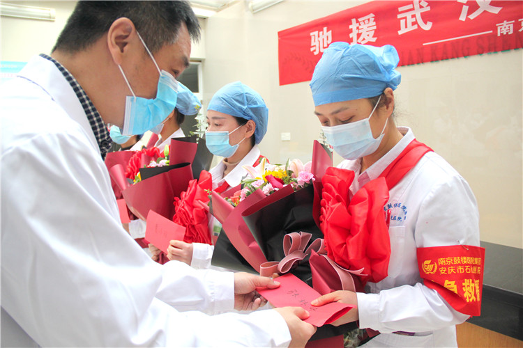 “你們在湖北戰(zhàn)斗,我們在安慶防守,眾志成城,待各位平安凱旋之時,我們再歡聚慶賀!”周長江院長代表醫(yī)院送上慰問。