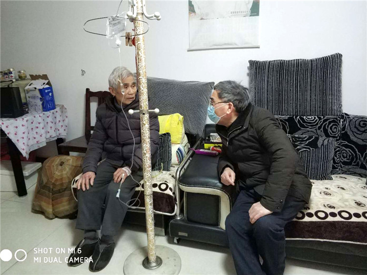 3月4日,周勁勇副主任的父親生病需要輸液,但疫情期間診所都暫停營業(yè)了。得知消息后,臨二黨支部劉曙光、汪念東、周傳毅、葛翠紅積極行動起來,第一時間趕到周主任家中,為其父親輸液治療,并為其母親做術后檢查,同時送去慰問品。