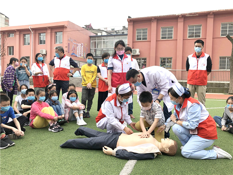 5月8日,為紀(jì)念第73個(gè)“世界紅十字日”,大觀區(qū)衛(wèi)健委、大觀區(qū)紅十字會(huì)邀請(qǐng)我院醫(yī)護(hù)人員,為集賢路小學(xué)師生進(jìn)行應(yīng)急救護(hù)培訓(xùn)演練。由醫(yī)教科、護(hù)理部牽頭安排,急診科副護(hù)士長(zhǎng)石嘉麗、心血管內(nèi)科護(hù)士長(zhǎng)彭鳳艷、醫(yī)教科江斌、王莘一行4人參加。