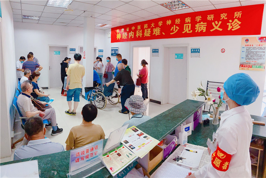 儀式結(jié)束后,安徽中醫(yī)藥大學(xué)神經(jīng)病學(xué)研究所附屬醫(yī)院的專家團隊在該院專家門診開展神經(jīng)系統(tǒng)疑難、少見病義診,慕名而來的患者擠滿了走廊。