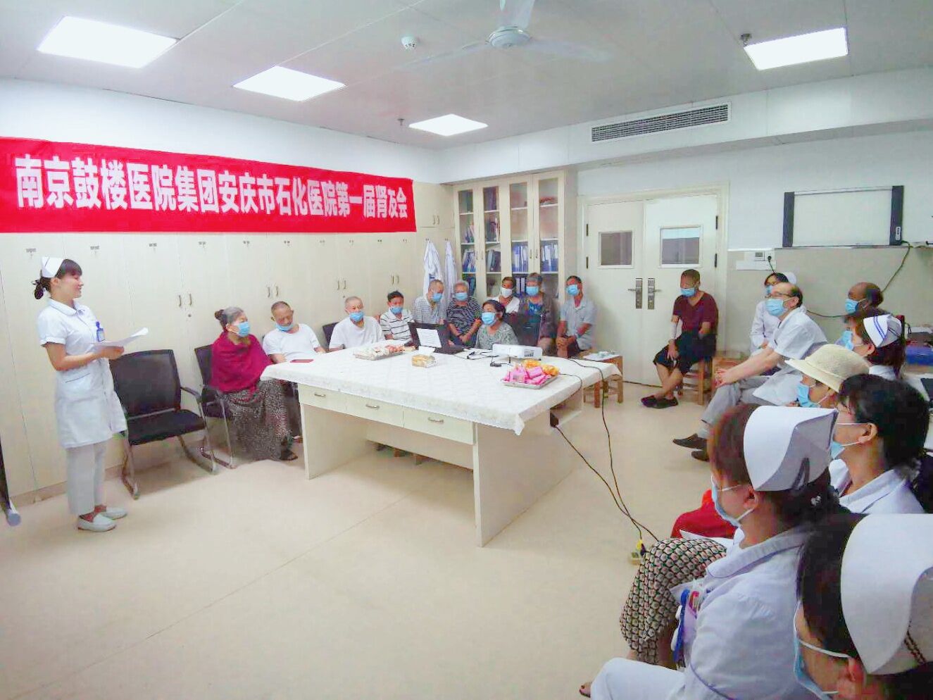 為提高腎病患者及家屬對腎臟病的認識,幫助患者延長生存時間、改善生存質量,9月7日下午,我院腎內科組織透析的腎友及家屬,在腎內科病房舉辦了第一屆腎友會?;顒佑赡I內科副護士長疏平主持,20余位腎友及家屬參加。