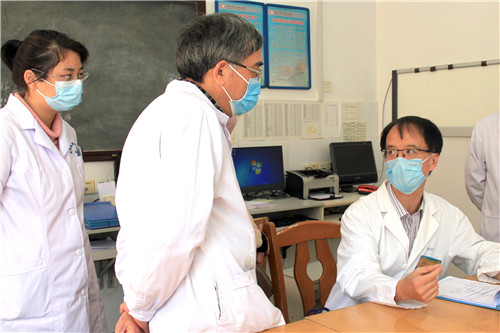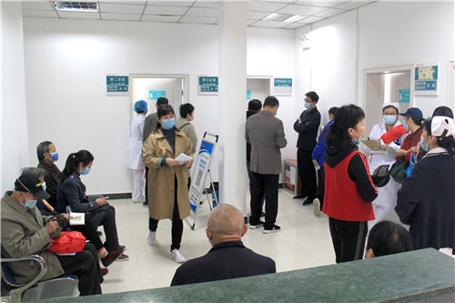 在安慶市石化醫(yī)院的專家門診診室里,來自南京鼓樓醫(yī)院的10位專家在此坐診,慕名而來的患者擠滿了候診室。