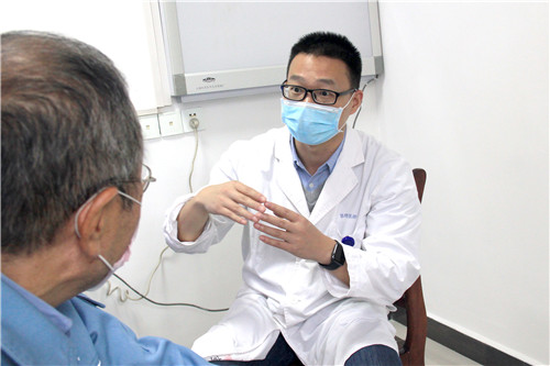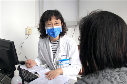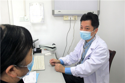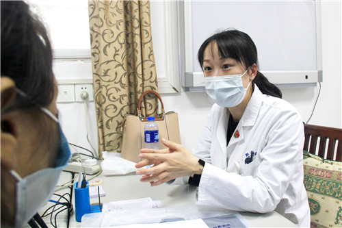 市民潘女士患有肝部腫瘤,聽說南京鼓樓醫(yī)院知名的肝膽腫瘤專家沈潔要來義診,她便早早就趕到了醫(yī)院。對潘女士的治療情況、身體狀況等進行了詳細問詢和查看后,沈潔為潘女士調(diào)整了治療方案,并耐心地和潘女士交談,希望她保持良好的心態(tài),積極面對腫瘤疾病。