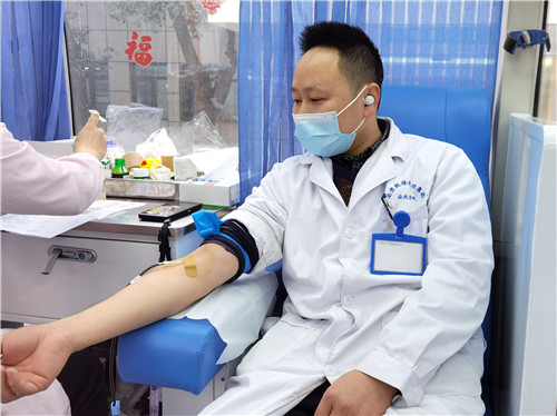 他們有的穿著工作服就來(lái)了,有的剛下夜班,還有的休假在家專程趕回醫(yī)院;他們中有醫(yī)生、護(hù)士等醫(yī)務(wù)人員,也有行政、保安、后勤等工作人員。經(jīng)體檢、初篩合格后,大家紛紛伸手捋袖,獻(xiàn)出殷紅、溫暖的鮮血。