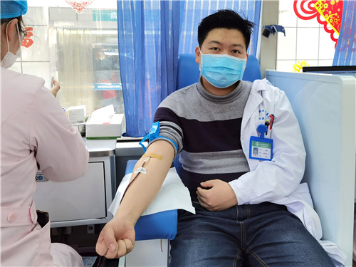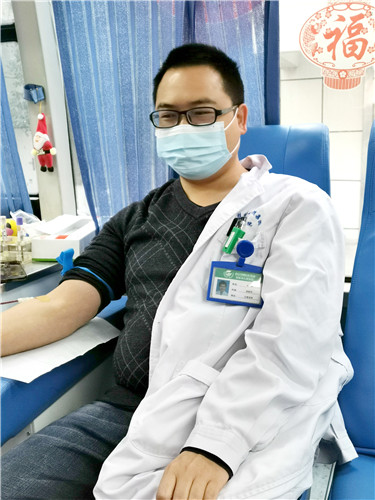 剛剛還穿梭于病房和換藥室的骨科副主任張明龍,一路小跑到獻(xiàn)血車旁。明明是寒冷的冬日,他的額頭上卻滿是細(xì)密的汗珠,“獻(xiàn)400ml!”他一邊擼起袖子一邊堅(jiān)定地說(shuō)。針管剛剛拔出,他又馬不停蹄地趕去手術(shù)室。
