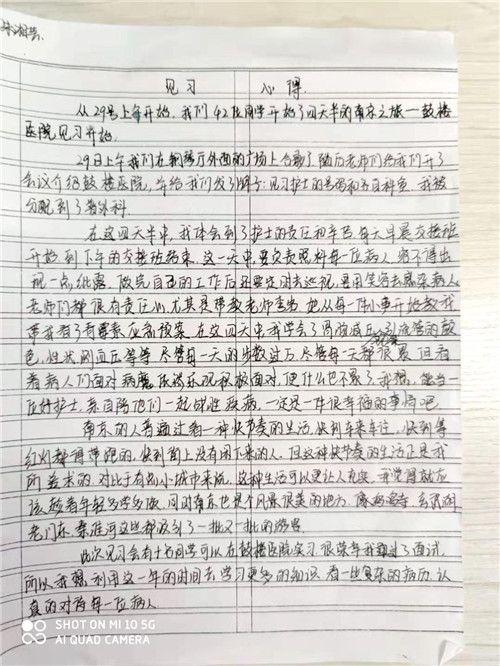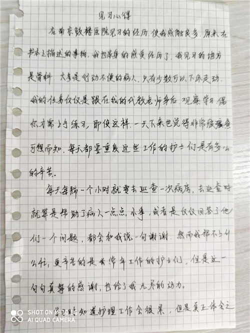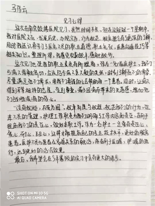 南京鼓樓醫(yī)院特色的人文文化和學(xué)科文化深深感染了同學(xué)們,她們?cè)谝娏?xí)心得中寫下感悟,紛紛表示受益匪淺,一定會(huì)加倍努力,早日成為一名合格的白衣天使。