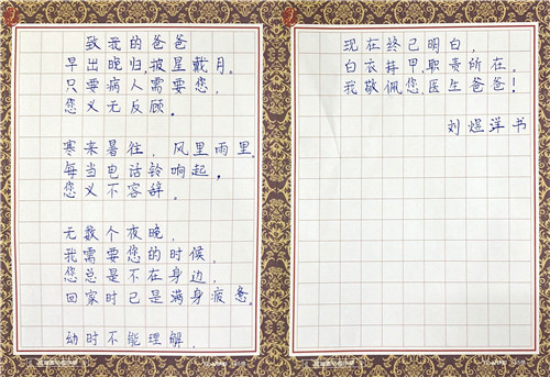 他們和“小小石醫(yī)人”一起,用手中的畫筆、毛筆、鋼筆,繪畫、書寫出自己對(duì)于幸福生活的不懈追求、對(duì)于醫(yī)院未來(lái)的美好期待。