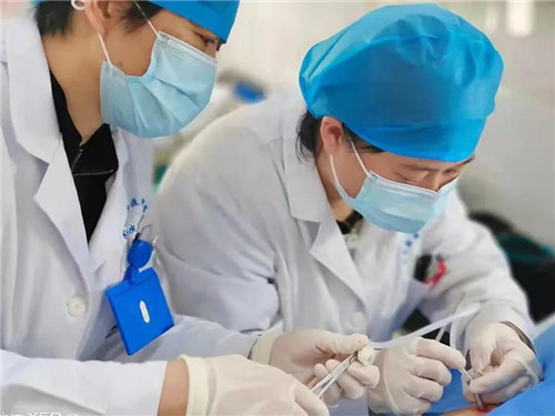 姚慶文、儲(chǔ)玲玲兩位醫(yī)生配合默契,以精湛的技術(shù)、嫻熟的手法為徐大爺行穿刺手術(shù)。術(shù)中,她們還不斷地安撫徐大爺?shù)那榫w,緩解他的緊張。