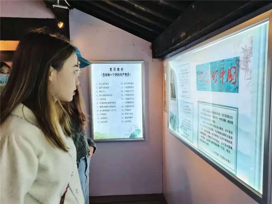 青年團員們跟隨講解員走進紀念館,映入眼簾的是一張張歷史照片、一件件戰(zhàn)士們使用過的冷兵器;駐足沙盤前,追憶由紅七軍團組建的北上抗日先遣隊在皖南地區(qū)的慘烈戰(zhàn)斗。一本生動的“黨史教科書”展現(xiàn)在大家眼前,每個人的心靈都受到震撼。