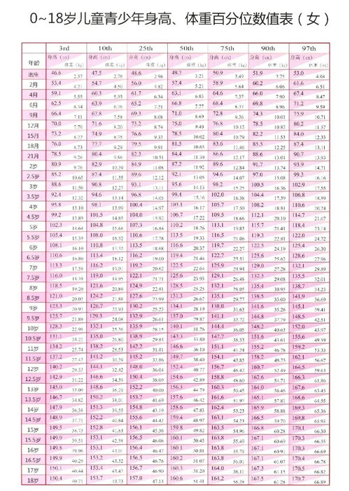 矮小癥是指兒童的身高低于同性別、同年齡、同種族兒童平均身高的2個(gè)標(biāo)準(zhǔn)差,每年生長速度低于5厘米者。兒童生長速度出現(xiàn)這幾種情況,都提示生長緩慢,家長請(qǐng)注意:①3歲前小于7厘米/年;②3歲到青春期小于5厘米/年;③青春期小于6厘米/年。寶媽寶爸還可參考下圖,對(duì)比一下自家寶寶的身高: