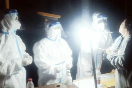 時間緊,任務(wù)重,10名隊(duì)員一條心,大家都只有一個心愿,按質(zhì)按量完成任務(wù),早日平安返回安慶。第一天的采集工作一直持續(xù)到深夜11點(diǎn)半。當(dāng)晚,石化醫(yī)院醫(yī)療隊(duì)共完成核酸采樣1728份。