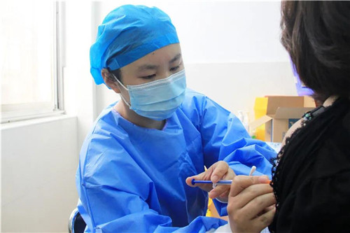 10個接種臺同時工作,醫(yī)務(wù)人員業(yè)務(wù)熟練,動作麻利,再次核對信息后完成疫苗接種,杜絕差錯發(fā)生。
