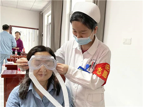 眼科姚衛(wèi)霞、趙佳,臨床一黨支部第一黨小組組長徐芳、積極分子雷靈枝,護(hù)理部團(tuán)員汪芳也分工協(xié)作,一面為職工進(jìn)行眼部SPA護(hù)理,一面細(xì)致講解護(hù)眼日常注意事項(xiàng)。
