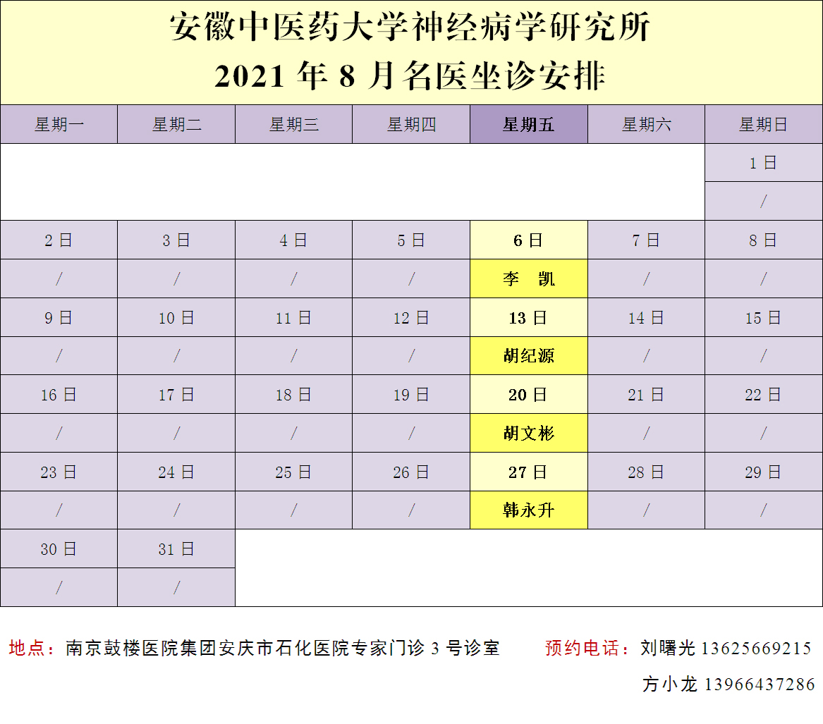 2021年8月,李凱教授、胡紀(jì)源教授、胡文彬教授和韓永升教授都將到石化醫(yī)院坐診,機(jī)會(huì)難得,不容錯(cuò)過!