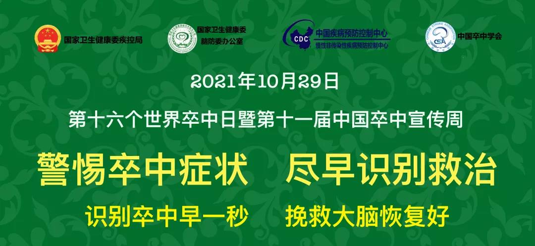 今年10月29日是第16個(gè)“世界卒中日”,以“警惕卒中癥狀,盡早識(shí)別救治”為主題,廣泛宣傳“識(shí)別卒中早一秒,挽救大腦恢復(fù)好”的理念。