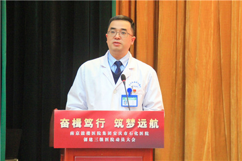 鄒曉平副院長表示,創(chuàng)建三級醫(yī)院既是機遇也是挑戰(zhàn),過程會很艱巨,但他深切感受到了石醫(yī)人充足的干勁和必勝的決心,希望全院能堅持把創(chuàng)建工作與日常工作緊密結合,提高管理能力,提升服務水平,加強內涵建設,義無反顧投身到醫(yī)院跨越式發(fā)展的重大實踐中。鄒院長也代表南京鼓樓醫(yī)院表態(tài),會從醫(yī)療技術、醫(yī)教科研等方面全力支持、幫助石化醫(yī)院創(chuàng)建三級醫(yī)院,實現自我超越。