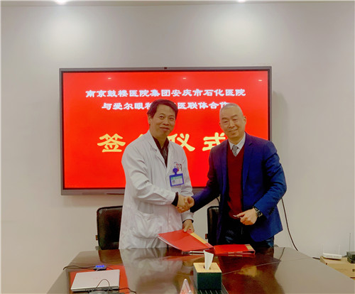 石化醫(yī)院副院長操海寶與安慶施漢彬愛爾眼科醫(yī)院院長于紅生現(xiàn)場簽署了醫(yī)療聯(lián)合體合作協(xié)議。