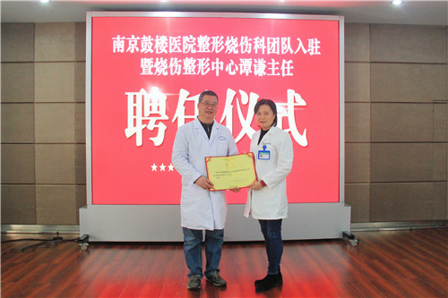 儀式上,石化醫(yī)院院長(zhǎng)韋寧華向譚謙主任頒發(fā)聘任證書。譚謙主任正式出任石化醫(yī)院燒傷整形中心主任。譚謙主任表示,南京鼓樓醫(yī)院和安慶市石化醫(yī)院是一家人,自己有責(zé)任、有義務(wù)與大家共同努力,把燒傷整形科帶向更高的層次。
