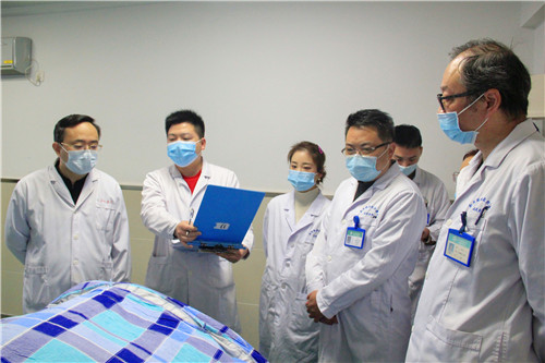 鄭東風(fēng)主任與蔣亞楠醫(yī)生帶領(lǐng)石化醫(yī)院燒傷整形科團(tuán)隊(duì)開展查房、教學(xué)工作,了解患者病情,給出指導(dǎo)意見。