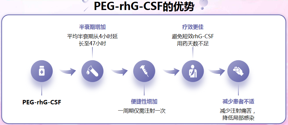 PEG-rhG-CSF的療效更優(yōu),可顯著加快中性粒細(xì)胞的增殖速率和恢復(fù)時(shí)間;還能減輕患者的經(jīng)濟(jì)負(fù)擔(dān),降低37%以上費(fèi)用。