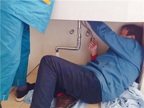 病房衛(wèi)生間漏水,行政綜合科徐大毛第一時間趕到,快速更換破裂的水管。窩在角落的身影,成為了一道美麗的風(fēng)景線,為他點(diǎn)贊!