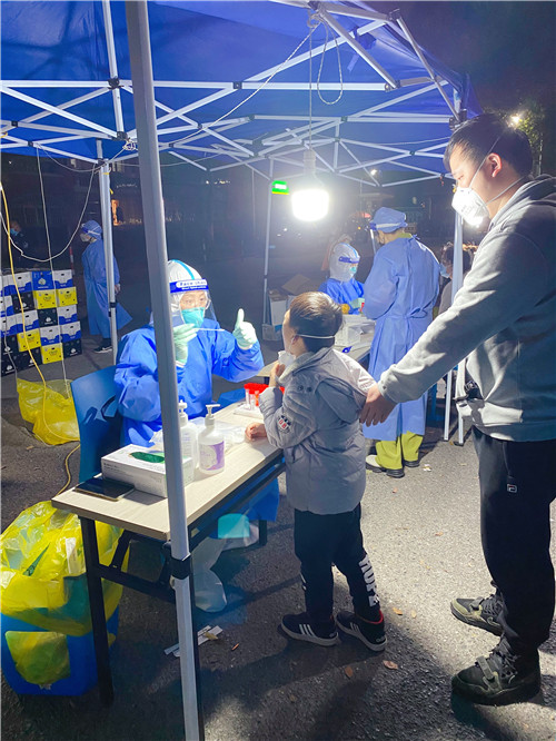 作為三個孩子的媽媽,麻醉科護(hù)士程鳳仙舍小家為大家,第一時間報名支援上海戰(zhàn)疫?!靶∨笥?,你真勇敢!”她一面鼓勵剛做完核酸的小朋友,一面豎起大拇指點(diǎn)贊。