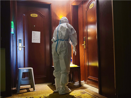 菱北門診部護(hù)士長王君先后2次在不同隔離點(diǎn)參與保障工作,負(fù)責(zé)核酸采集運(yùn)送、醫(yī)療垃圾收取、為隔離人員送餐。