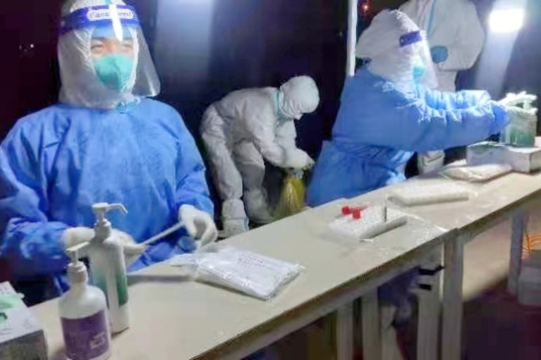 清明節(jié)假期第一天,在工作微信群里看到醫(yī)院正在招募組建援滬醫(yī)療隊,我第一時間主動報名??焖偈帐靶醒b,隨隊深夜趕赴上海,參與核酸采集,為上海戰(zhàn)疫貢獻石醫(yī)青春力量。