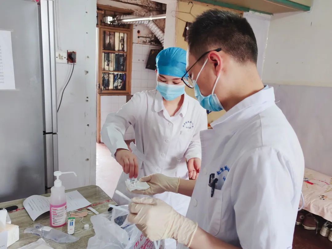 在備齊所需物品后,醫(yī)護人員來到李阿姨家中。進行相關(guān)體征檢查并評估患者身體狀況后,準備用物。醫(yī)生吳亞為和護士潘星星配合默契,操作嫻熟,不一會兒就為李阿姨更換好了新的胃管。