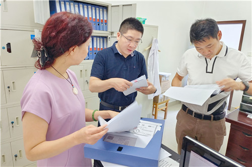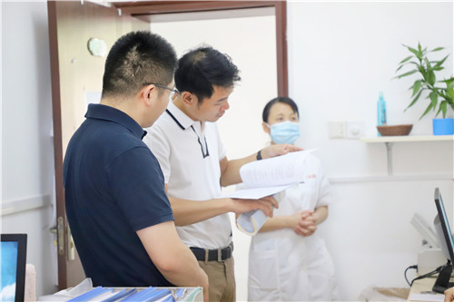 8月4日、5日,金陵藥業(yè)紀(jì)委書(shū)記嚴(yán)廣裕、監(jiān)察室副主任嚴(yán)遜、劉寧寧等領(lǐng)導(dǎo),來(lái)院現(xiàn)場(chǎng)檢查指導(dǎo)。
