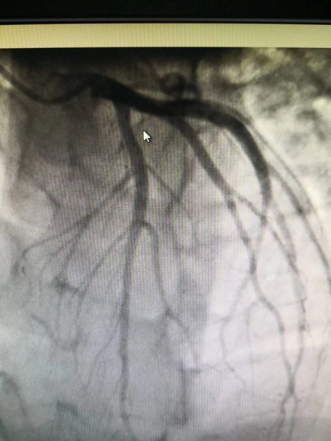 冠脈造影提示前降支近段50%局限性狹窄,遠端肌橋