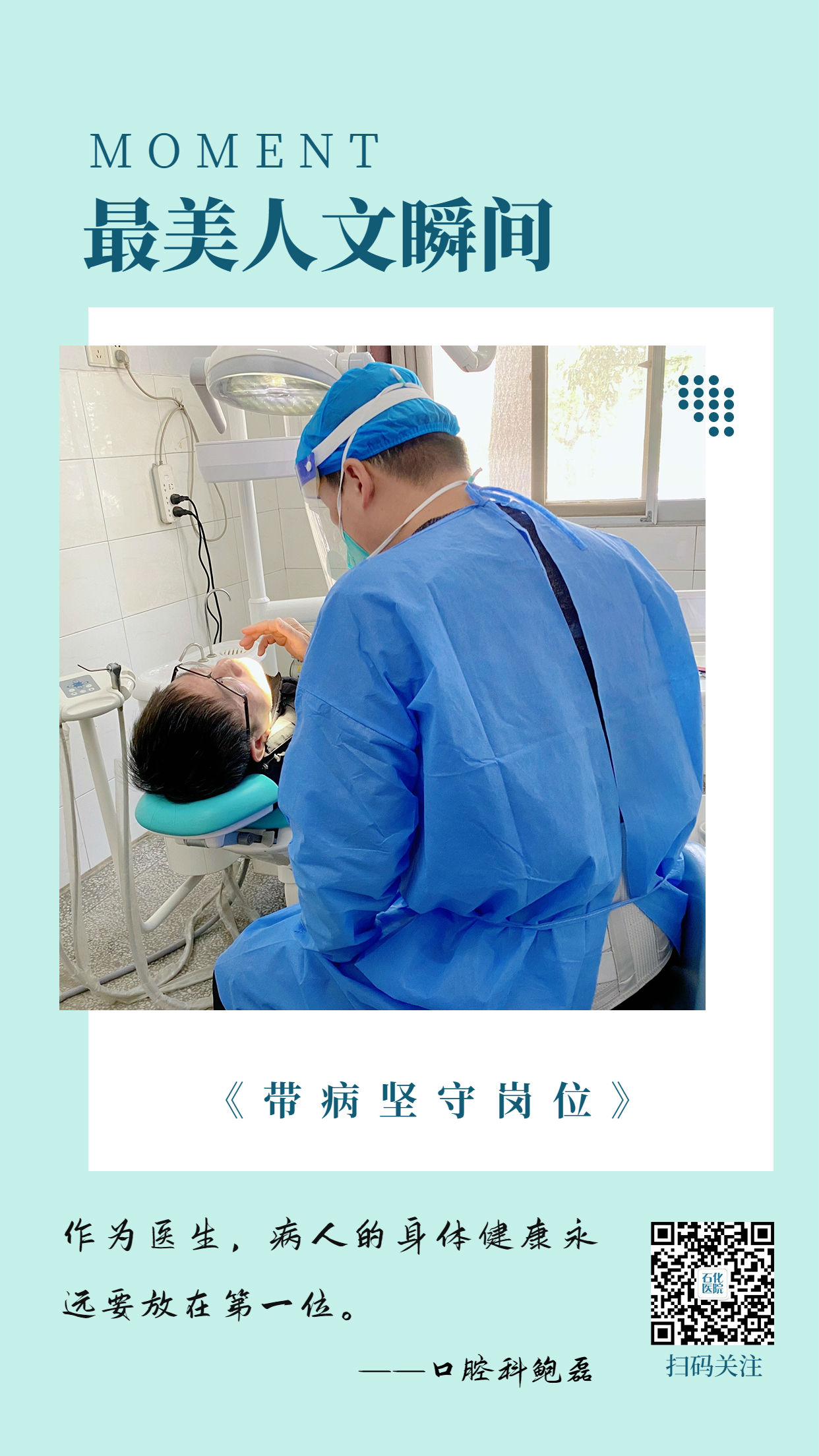 白衣是他們的制服,微笑是他們的態(tài)度。一次真誠的贊揚(yáng),是對他們最大的肯定;一份珍貴的信任,才是治病的最好良藥。眼里有火,心里才有光。感謝信任?。ń鸨?nbsp; 攝)