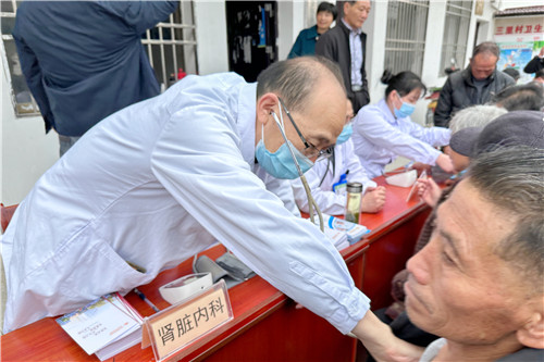 3月29日,石化醫(yī)院黨委副書記汪文曉帶領專家團隊一行14人,攜B超機、心電圖機等設備驅車2個多小時,奔赴潛山市三里村開展大型義診活動,為當?shù)鼐用袼腿?yōu)質(zhì)便利的醫(yī)療服務。