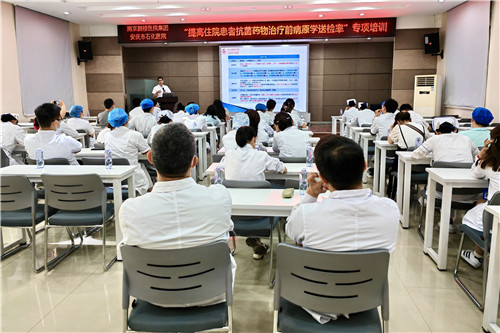 院感辦組織開展專題培訓,檢驗師、臨床藥師及臨床科室醫(yī)院感染管理小組成員參加。陳麗娟主任針對醫(yī)院臨床抗菌藥物治療前病原學送檢率的現(xiàn)狀進行分析,并提出相應改進措施。醫(yī)教科科長江斌、藥學部副主任藥師琚長斌、檢驗科主管技師董飛分別以抗菌藥物的合理使用、微生物檢驗標本的采集規(guī)范為主題進行培訓。