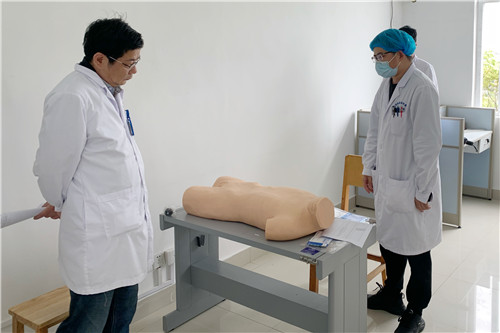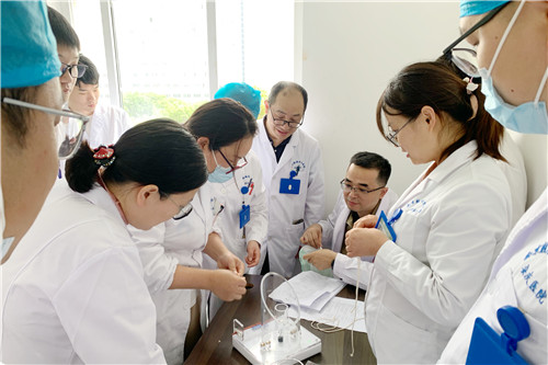 考核涵蓋心肺復蘇、胸腔穿刺、腹腔穿刺、腰椎穿刺、氣管插管、清潔換藥、外科打結(jié)等操作,由高級職稱醫(yī)師擔任評委,嚴格按照評分標準,對操作規(guī)范、合理治療等方面進行全面評估,并加以點評??己诉^程中,臨床醫(yī)師們展現(xiàn)出了嫻熟的臨床技能和豐富的實踐經(jīng)驗。