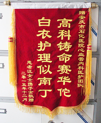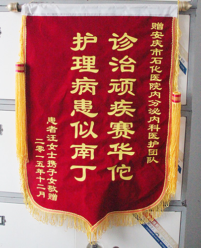 近日,患者汪女士的子女替母親向我院內(nèi)分泌科和心血管內(nèi)科全體醫(yī)護(hù)送上錦旗,贊揚(yáng)他們的高超醫(yī)技和精心護(hù)理,感謝他們對(duì)老人無微不至的照料。