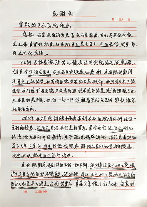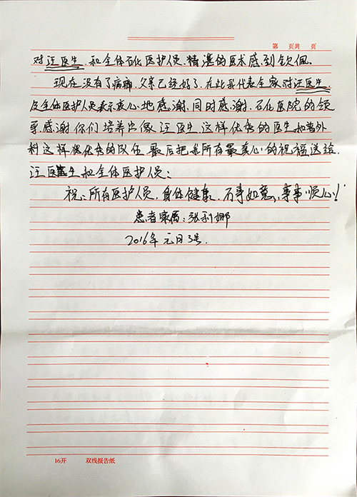 您當(dāng)前的位置: 首頁> 醫(yī)院動(dòng)態(tài)> 醫(yī)院新聞> 普通外科獲感謝信