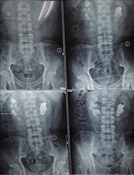 兩位患者均因腰背部疼痛來我院看診,住院后行CT等檢查確診為馬蹄腎合并腎結(jié)石,一例左腎結(jié)石大小約2.5cm,另一例右腎結(jié)石大小約3.0cm。