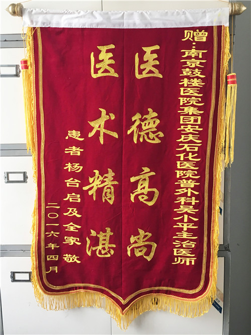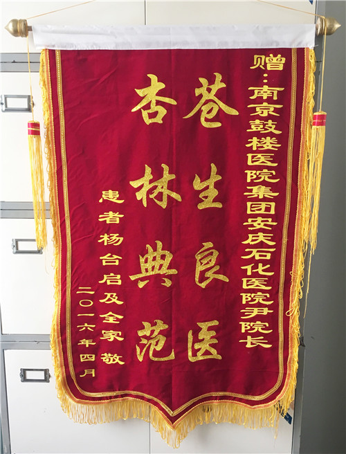 4月11日上午,73歲的楊大爺趕在出院前,為南京鼓樓醫(yī)院集團(tuán)安慶市石化醫(yī)院副院長(zhǎng)、主任醫(yī)師、碩士生導(dǎo)師、南京鼓樓醫(yī)院普通外科專家尹衛(wèi)民以及石化醫(yī)院普通外科醫(yī)生吳小平送去錦旗,贊揚(yáng)他們醫(yī)術(shù)高、醫(yī)德好的同時(shí),對(duì)石化醫(yī)院的醫(yī)療服務(wù)更是連連稱贊?!拔覐膱?bào)紙上了解到,尹院長(zhǎng)是南京疝氣治療方面的專家,這次手術(shù)做得特別好,真是太謝謝他們了?!?/span>
