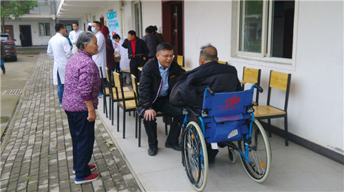 4月27日下午,春寒未盡,細雨蒙蒙,南京鼓樓醫(yī)院集團安慶市石化醫(yī)院黨委書記陳勝、副院長汪文曉帶領(lǐng)十幾名醫(yī)護骨干前往??陴B(yǎng)老院義診,并帶去水果和常用藥品,為老人送去關(guān)愛和溫暖。