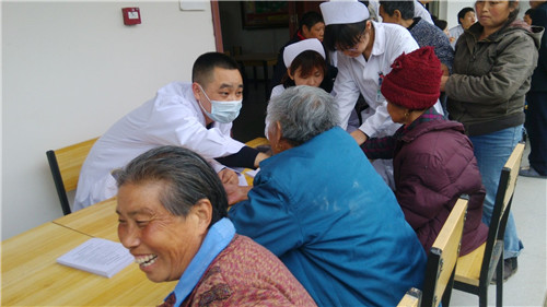 義診現(xiàn)場,醫(yī)務(wù)人員親切詢問老人的身體狀況,為他們進行了血壓測量、心肺聽診等常規(guī)檢查,并針對老人年老體弱易患病的特點,給予用藥、保健、飲食等方面的指導(dǎo)。護理部李桃云主任和2名護士還來到行動不便無法前往現(xiàn)場的老人床邊,噓寒問暖,測量血壓,整理床鋪,指導(dǎo)預(yù)防壓瘡,將愛心送到老人們的身邊。