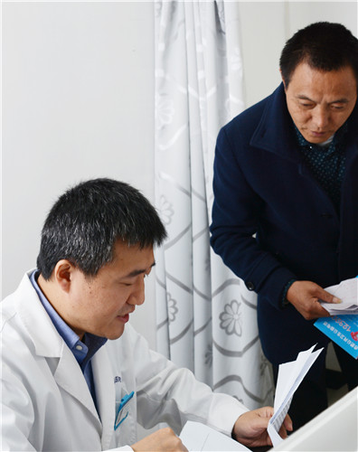這天是星期四,正是南京鼓樓醫(yī)院疼痛科副主任醫(yī)師陶高見(jiàn)在石化醫(yī)院進(jìn)行專家門診的日子。上午十點(diǎn),在石化醫(yī)院疼痛科門診,筆者見(jiàn)到了正在為病人診斷的陶高見(jiàn)醫(yī)師,他正在細(xì)致地觀察著一張病人的CT片,跟家屬討論著下一步的治療方案。
