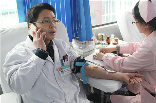 現(xiàn)場雖寒風凜冽,但愛心涌動。我們的醫(yī)護有的急匆匆獻完血就趕回科里繼續(xù)忙碌,有的邊獻血邊還在打電話為患者答疑,有的剛下大夜班或者才從手術(shù)臺上下來,還有的在休假中特意從家中趕來……黨委書記陳勝也參與其中。大家秩序井然地排隊等待,只為獻出一袋承載自己愛心的血液。