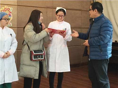 花杰副院長到會并致辭,表達了我院對護理實習工作的關(guān)心和重視,并向即將面臨就業(yè)的護生送上誠摯的祝福。李主任宣布了獲得2016-2017年“優(yōu)秀實習生”名單,并邀請該年度優(yōu)秀帶教老師為她們頒發(fā)榮譽證書。