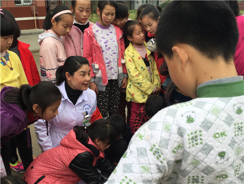 下午,服務隊剛剛抵達校園,孩子們就滿懷好奇地把他們團團圍住,“阿姨,我要學救人……”好一群萌萌噠的孩子啊,他們和春天一樣朝氣蓬勃。在校長及老師的安排下,孩子們秩序井然地圍成兩圈,志愿者劉鳳英、彭鳳艷護士長分別為孩子們示范操作,對高年紀的學生手把手指導;護理干事陳麗娟擔任解說員,將操作步驟及注意事項用通俗易懂的語言向小朋友們娓娓道來。志愿者們既專業(yè)又耐心,孩子們都躍躍欲試,現場學習氛圍濃厚。校長和老師對我院“天使愛心服務隊”此次培訓給予了高度評價,希望今后能多舉辦此類活動,讓更多人受益。