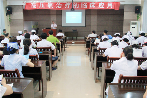 7月7日,我院神經(jīng)內(nèi)科在多功能廳舉辦高壓氧治療技術(shù)在臨床應(yīng)用新進(jìn)展學(xué)術(shù)講座?;ń芨痹洪L主持并致歡迎詞,兄弟醫(yī)院及我院臨床相關(guān)科室醫(yī)護(hù)人員70余人參會。