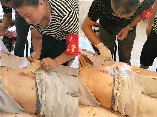 許合立老人今年5月由于腸道疾病在我院普通外科行結(jié)腸造口術(shù),于6月出院。此次,護(hù)理部李桃云主任帶領(lǐng)普通外科主治醫(yī)師孫潤森和責(zé)任護(hù)士丁玉瑾、陳誠來到老人家中回訪。孫潤森醫(yī)生詳細(xì)為老人檢查了傷口,并仔細(xì)詢問老人出院后的飲食及日常活動情況;護(hù)士丁玉瑾一邊為老人更換造口袋,一邊耐心教老人更換造口袋的技巧以及如何做好造口周圍皮膚的護(hù)理;護(hù)士陳誠還就疾病的注意事項(xiàng)和預(yù)防并發(fā)癥的發(fā)生做了相關(guān)指導(dǎo),并對老人展開針對性的心理健康宣教;李桃云主任還將帶去的愛心水果送到老人手中,老人激動地連聲說謝謝。