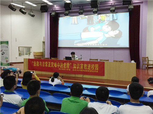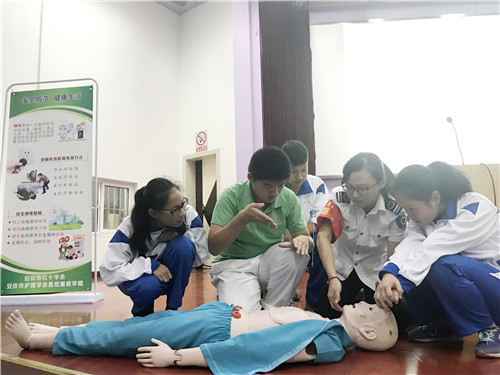 今年是第18個“世界急救日”,為積極響應(yīng)安慶市護(hù)理學(xué)會急危重癥學(xué)術(shù)組與紅十字會聯(lián)合舉辦的“急救與日常及災(zāi)難中的危險”知識宣教進(jìn)校園活動,9月11 日下午,我院愛心天使服務(wù)隊的 6名成員著裝整齊來到安慶石化一中,為高一年級的同學(xué)們普及急救知識。近三百名師生參加了培訓(xùn)。