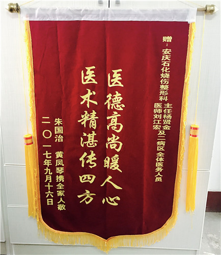 患兒傷后29天痊愈出院,家人也為燒傷整形二科全體醫(yī)護送上“醫(yī)德高尚暖人心 醫(yī)術(shù)精湛傳四方”的錦旗一面。這也是近年來我院嚴重燒沖復合傷治療時間最短、臨床效果最好的病例之一。