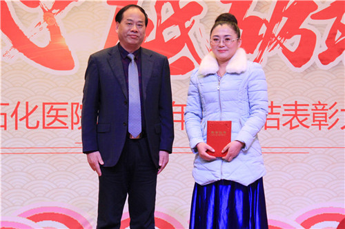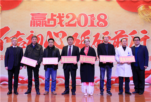 陳勝書記宣讀新工集團(tuán)優(yōu)秀員工、金陵藥業(yè)優(yōu)秀管理者、優(yōu)秀員工、文明班組、市級和院級重點(diǎn)學(xué)科名單,以及醫(yī)院《關(guān)于表彰2017年度先進(jìn)集體和先進(jìn)個(gè)人的通報(bào)》,9名院領(lǐng)導(dǎo)為先進(jìn)個(gè)人、集體現(xiàn)場頒獎(jiǎng),號召全院員工向先進(jìn)個(gè)人學(xué)習(xí),向重點(diǎn)科室看齊,立足崗位,創(chuàng)先爭優(yōu)。